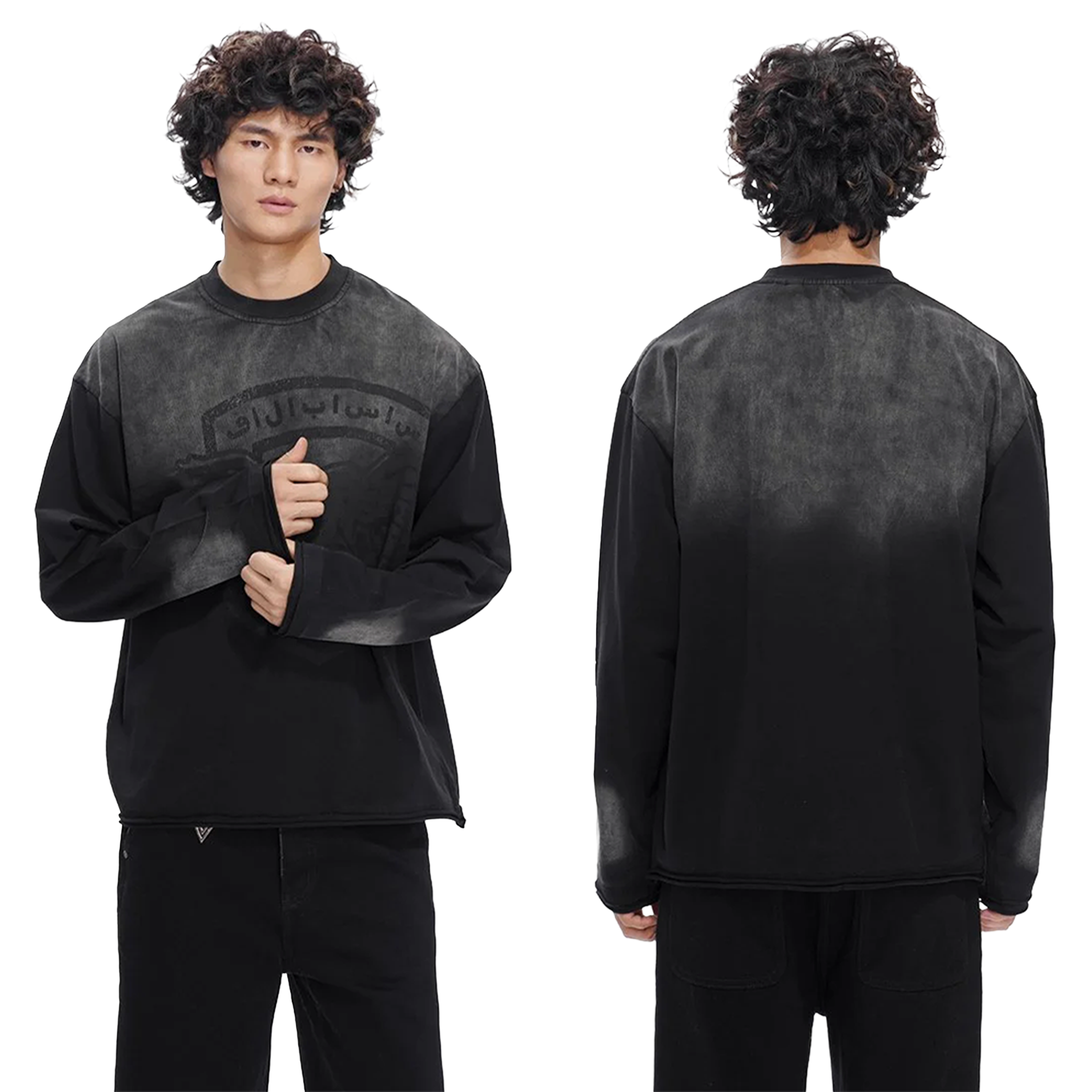 "Air Black Crew Neck" は、クリーンで大胆なカラーリングに、ヴィンテージ感のあるフロントグラフィックを落とし込んだ一着。